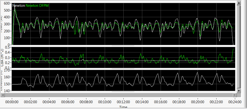 Calibration of 10 laps to set wind scaling (another windy day!). Then rode the race. Combined the data with my DFPM and here is the output. More details on this post http://www.timetriallingforum.co.uk/ind ... ce/&page=4