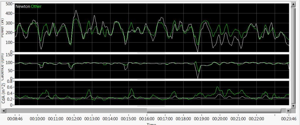 Full calibration ride. NOTE power should be off for last bur one lap because I am sat up on the base bar (hence CdA is higher than model expects). My point is that after a little work, with wind calibration etc, you can get some very nice data indeed.