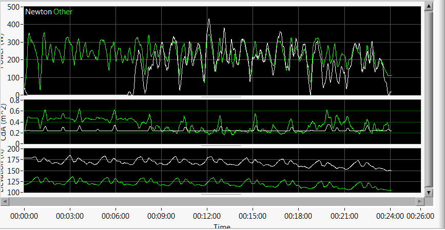 A real shame because I tested six position with careful replicates of seven laps per test (1.9 km per lap on a closed circuit) all at 200 Watts with about 1-2% variability we lap. Will see what Golden Cheetah has to say. Was hoping to impress one of the aero gurus also testing today. I plan on lending him a PP too.